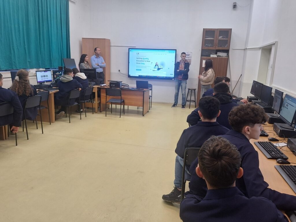 Vizita u realizua në kuadër të Javës Globale të Kodimit, ku nxënësit patën mundësi të zhvillojnë një orë kodimi dhe të eksplorojnë mundësi të shumta në botën e teknologjisë.