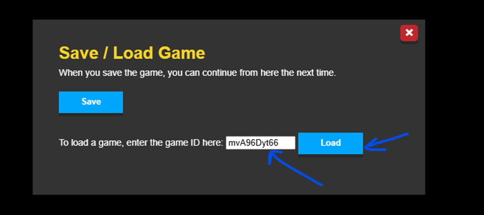 When you return to the game, just paste your code into the same menu and click Load to continue your adventure. If you want to save again, just repeat the process — super handy if you’re playing in multiple sessions.