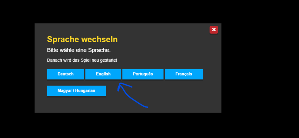 When you first open the game, it starts in German. Don’t worry — you can quickly switch it to English: