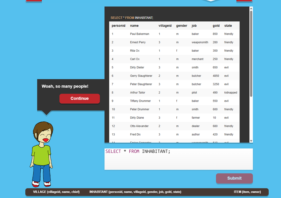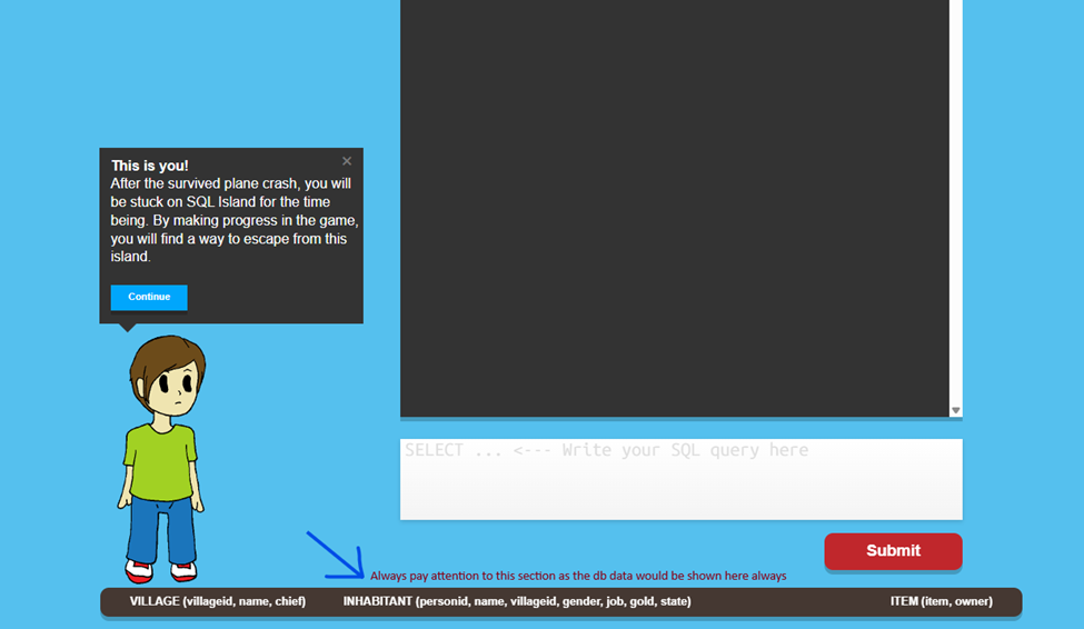 If SQLZoo felt like a training ground, SQL Island feels like an adventure that makes SQL come alive.