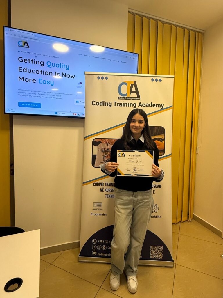 Në kuadër të projekteve praktike të kursit WordPress në Coding Training Academy, studentja Elita Ujkani ka realizuar dhe hostuar me sukses një web faqe të dizajnuar si shop online për bizhuteri dhe aksesorë luksozë, me fokus në prezantimin elegant dhe estetik të produkteve.