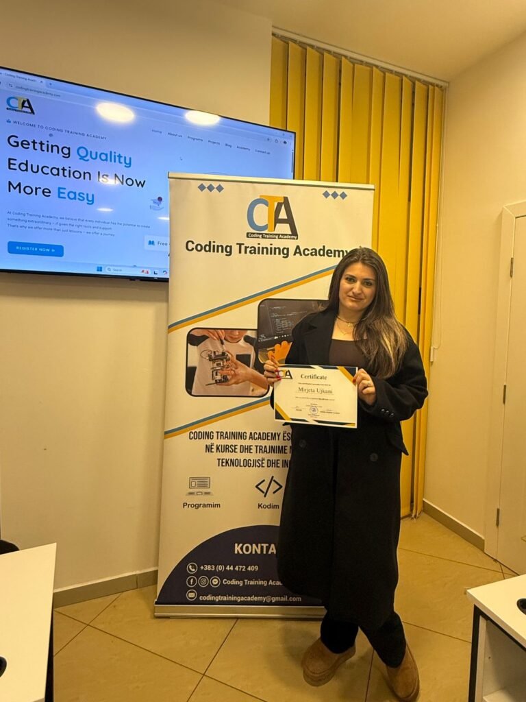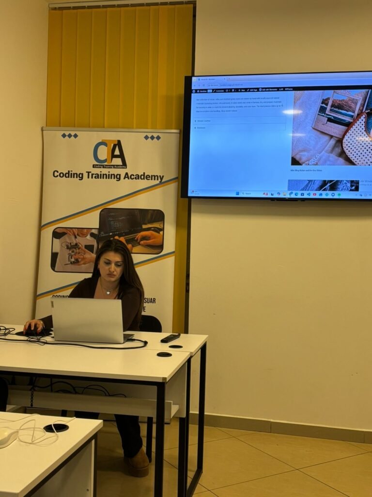 Në kuadër të projekteve praktike të kursit WordPress në Coding Training Academy, studentja Mirjeta Ujkani ka realizuar dhe hostuar me sukses një web faqe të dizajnuar si shop online për çanta dhe aksesorë mode, me fokus në stil elegant dhe prezantim modern të produkteve.