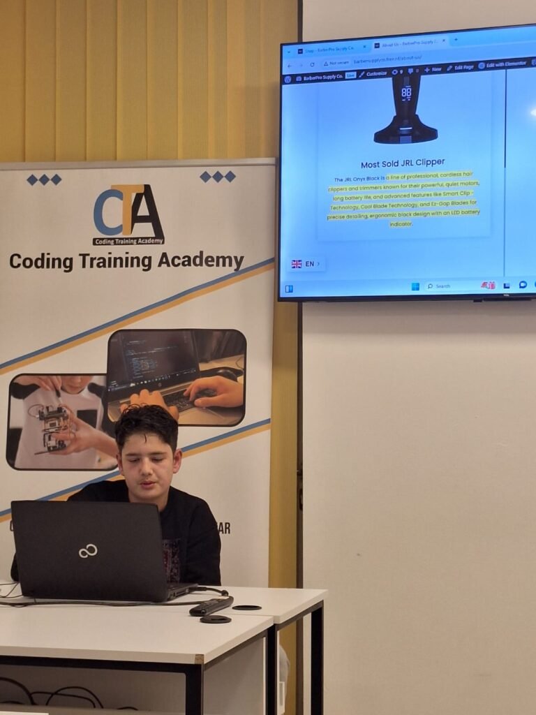 Në kuadër të projekteve praktike të kursit WordPress në Coding Training Academy, studenti Ajan Çaka ka realizuar dhe hostuar me sukses një web faqe të dizajnuar si shop online për pajisje dhe produkte barber, e fokusuar në nevojat e berberëve profesionalë.