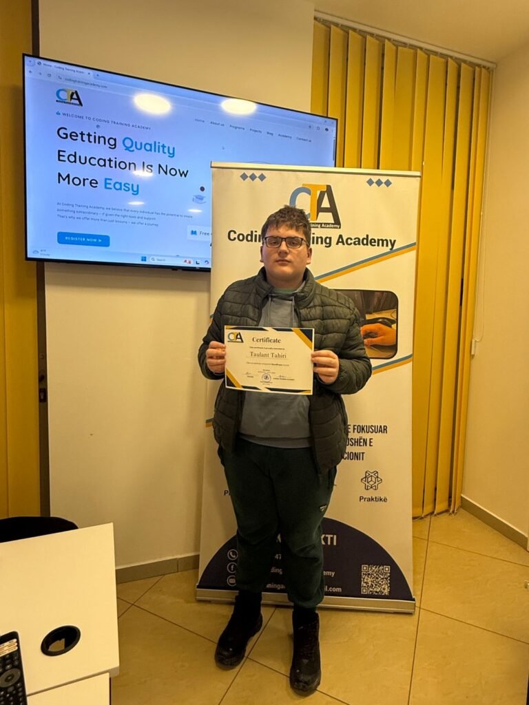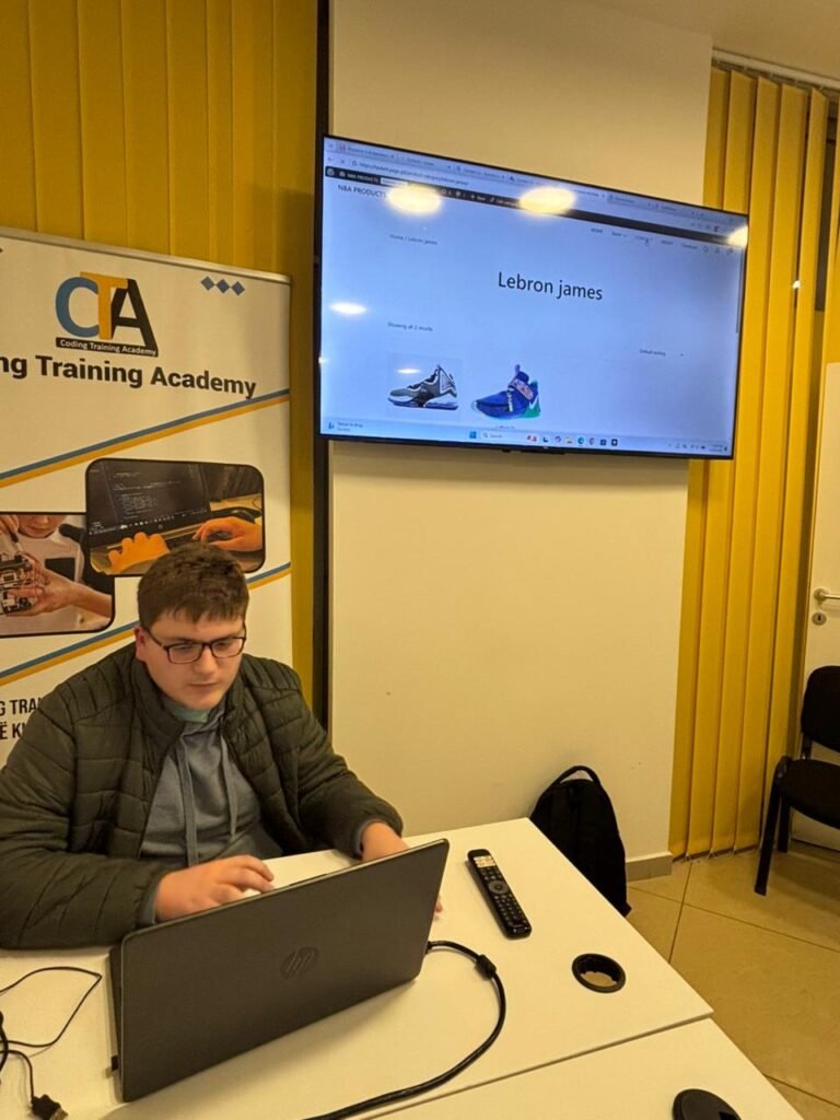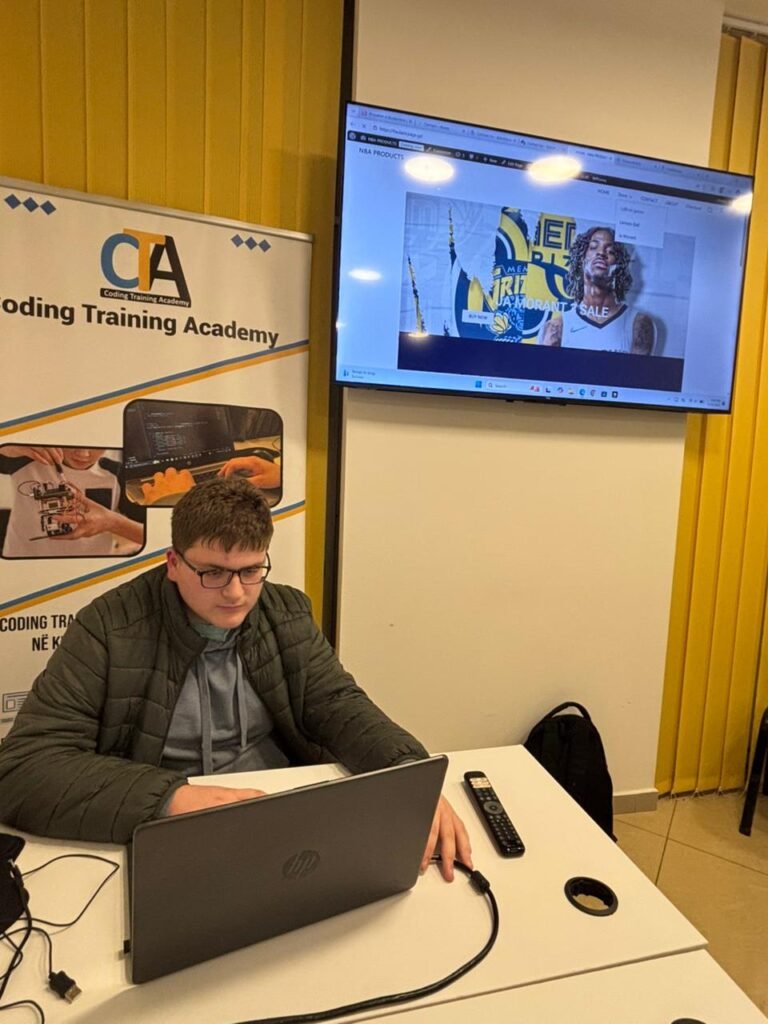 Në kuadër të projekteve praktike të kursit WordPress në Coding Training Academy, studenti Taulant Tahiri ka realizuar një web faqe të dizajnuar si shop online për produkte sportive me tematikë NBA, e cila aktualisht është në fazë zhvillimi.