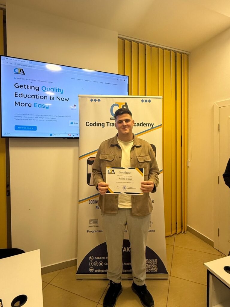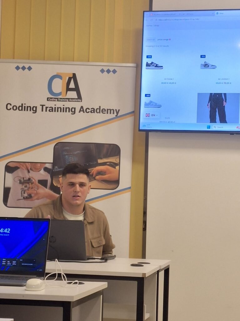 Në kuadër të projekteve praktike të kursit WordPress në Coding Training Academy, studenti Arlind Thaçi ka realizuar dhe hostuar me sukses një web faqe të dizajnuar si shop online për veshmbathje dhe produkte sportive, me stil modern të frymëzuar nga brandet e njohura sportive.